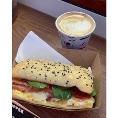 Medium Beverage and Big Bacon & Egg Turkish Roll